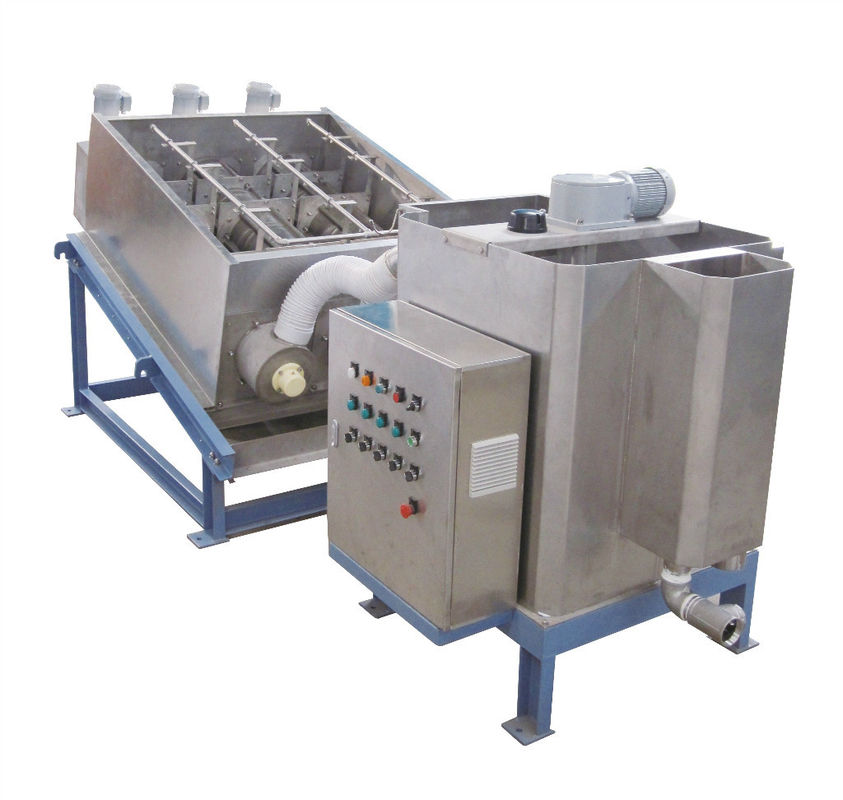 بعد دخول قسم نزح المياه ، تبقى النفايات الصلبة في القناة المكونة من العديد من الحشيات الضيقة ، وتتدفق مياه الصرف من الفجوات بين الحشوات.الفجوة صغيرة جدًا ولا تسمح إلا للماء بالمرور.سيتم اعتراض الشوائب الصلبة المتبقية.هناك نوعان من الألواح ، أحدهما عبارة عن حشية ثابتة والآخر عبارة عن حشية متحركة.عند تشغيل الجهاز ، ستعمل الحشية المتحركة على حركة دائرية صغيرة لتسهيل مرور الماء.