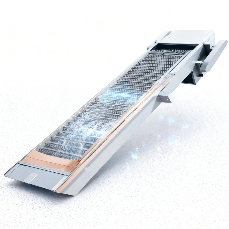 عندما يتم نقل سلسلة الصنوبر إلى الجزء العلوي والخلفي من الجهاز ، نظرًا للدور التوجيهي لعجلة السلسلة والسكة المنحنية ، يمكن خلع الصفوف المتوازية ، بحيث يمكن أن تسقط الأوساخ الصلبة في أخدود الخبث من خلال زنه.عندما تسقط بشكل نظيف ، فإن هذا النوع من الشبكة يكون من السهل جلب الأوساخ إلى القناة خلف الشبكة.