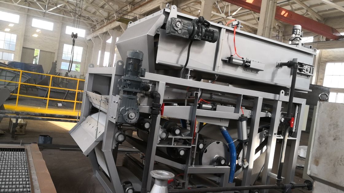 يتكون المعدات أساسا من مكثف الحزام وآلة إزالة المياه. بعد إضافة المكوث، والوحل سوف تتدفق إلى قسم إزالة المياه الجاذبية بعد أن تكون مختلطة تماما في خلاط الوحل.تحت تأثير الجاذبية، سوف تدفق مياه الصرف الصحي إلى قسم إزالة المياه الجاذبيةيدخل خزان جمع المياه، ثم يتم توجيهها من خلال قسم الضغط المسبق على شكل سكين ، بحيث يتم تسوية الوحل تدريجياً وضغطه قليلاً لمزيد من الجفاف ،ومن ثم يدخل الدوال متعدد على شكل S في قسم الضغط، يتم وضع الوحل بين قطعة الفلتر العلوية والسفلية ويتم ضغطه بشكل متكرر بواسطة عدة شعارات من قطرات مختلفة.يتم قص الوحل ويتم تجفيف الوحل من الماء لتشكيل كعكة طينفي النهاية، يتم إزالة الوحل بواسطة مقشّع. يتم قشّع الكعكة ونقلها إلى الخارج، ويتم غسل أحزمة المرشح العلوية والسفلية ثم إعادة استخدامها.